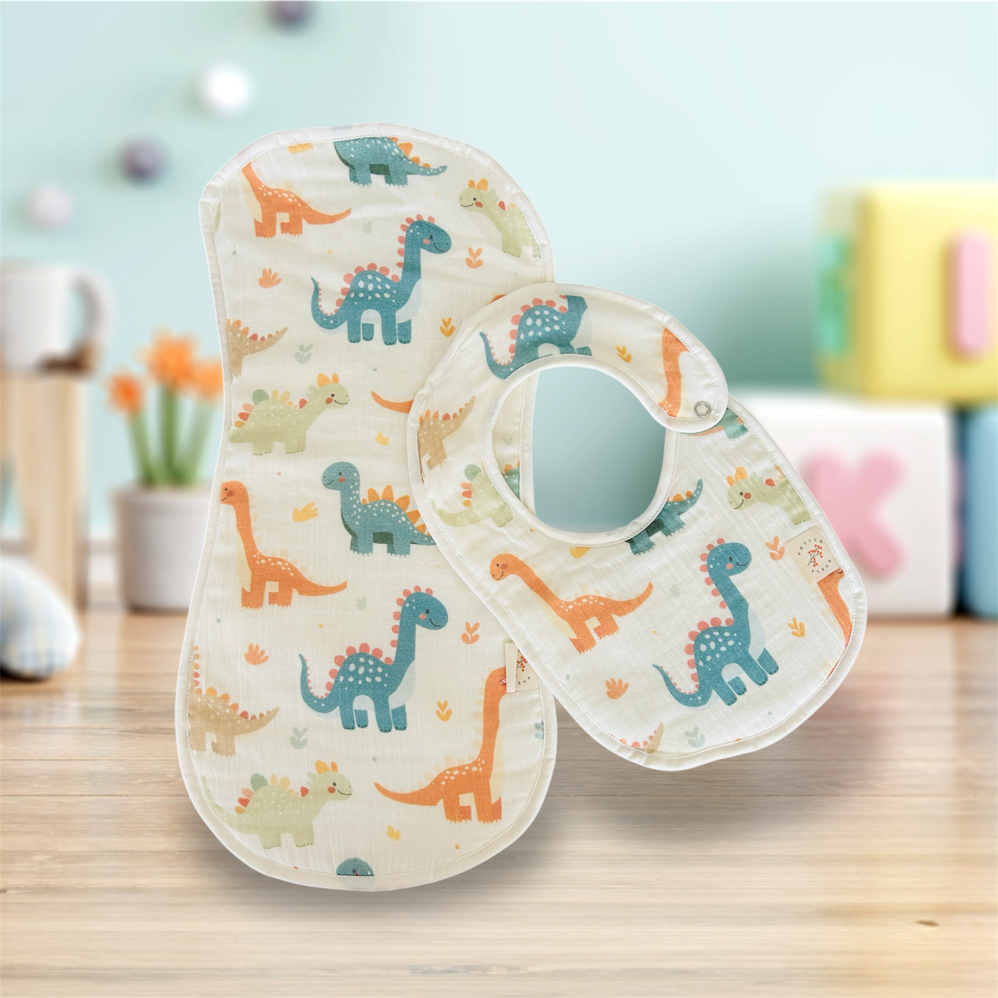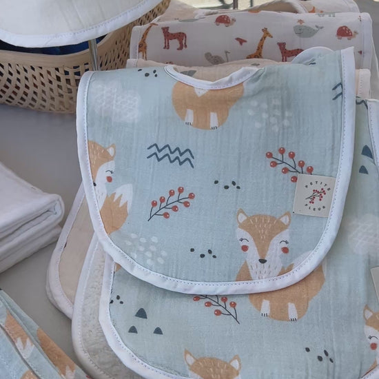 Crafted from 100% organic muslin cotton, each piece is exceptionally soft, breathable, and gentle on delicate skin. Both the bib and burp cloth are padded with ultra-soft, anti-allergic welsoft for extra comfort and absorbency, making everyday moments even cozier.